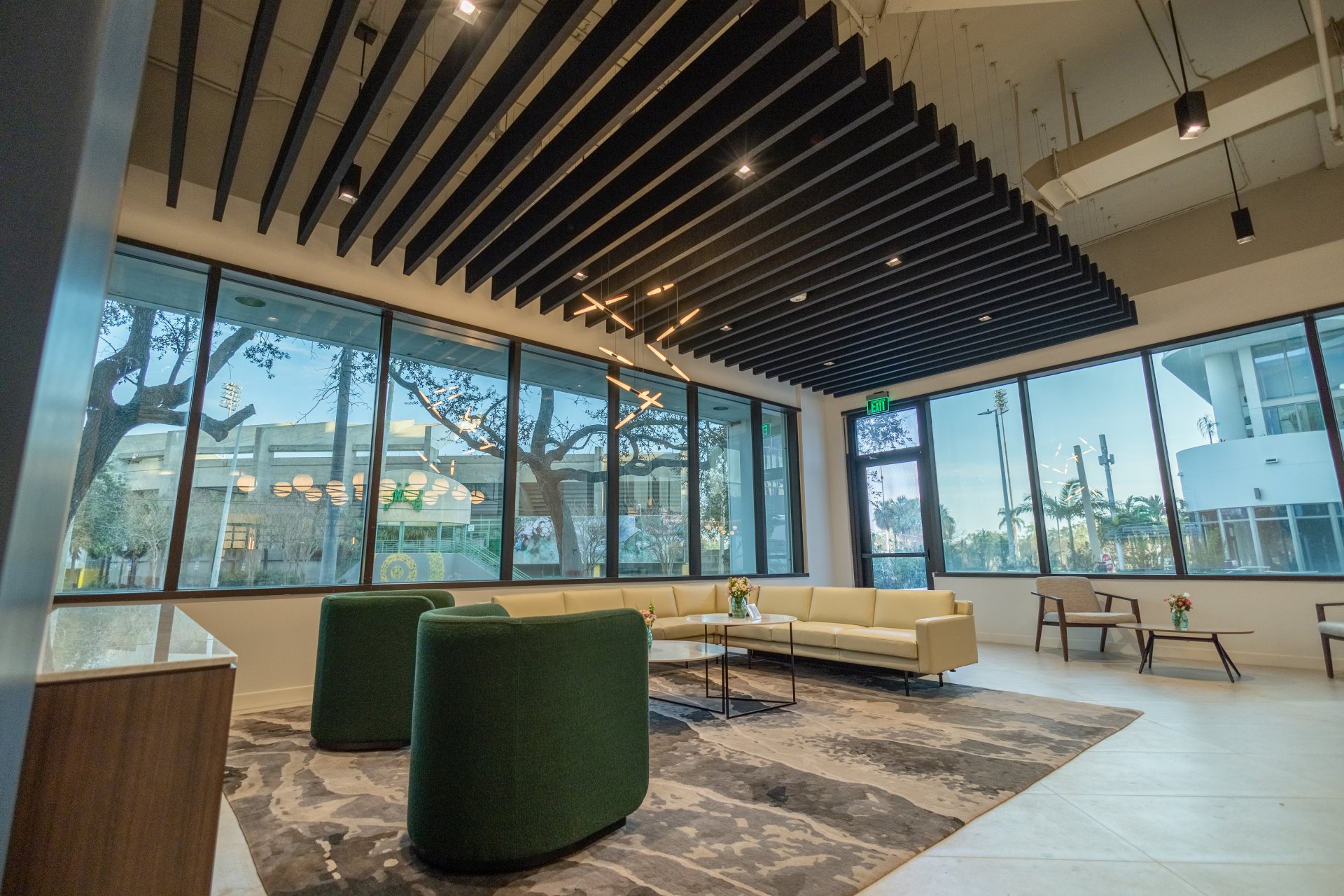 Conference rooms are one of the spaces in all offices where clear communication is essential, which is why they must be designed for great office acoustics to eliminate any speech intelligibility issues. Incorporating acoustic wall panels, ceiling baffles, and furniture that reduces reverberation are all incredibly helpful in this regard. For a polished, professional look, high performance wood slat panels deliver acoustical performance in a package that blends both classic and modern design sentiments.