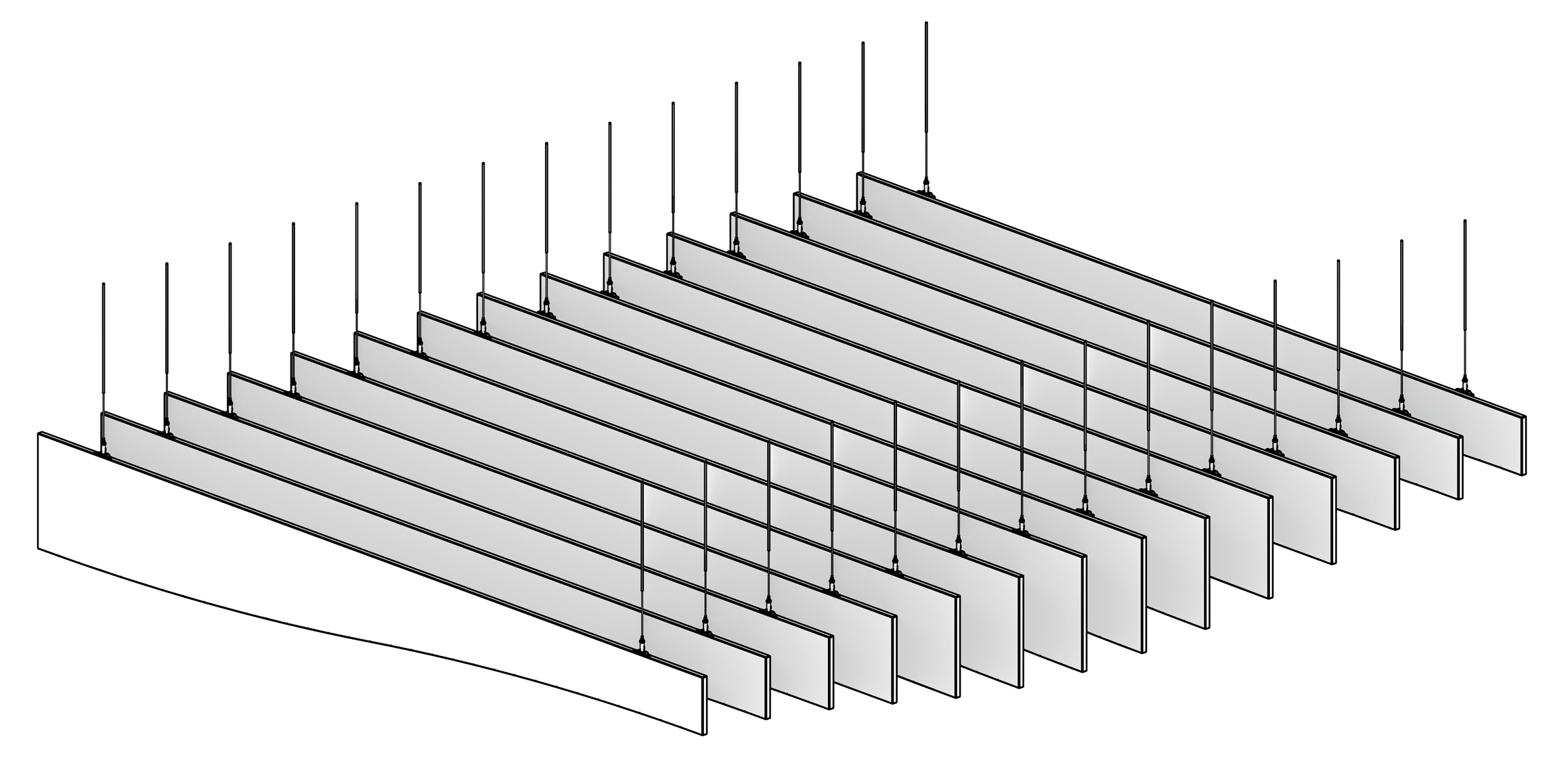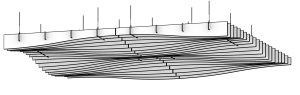 Topo gives open ceilings a topography. Individual PET felt blades build into a rolling baffle system, and are available in two standard profiles, the angular Zig and the curved Swell. It’s a sculptural system engineered with enough range to fit your project, not the other way around.