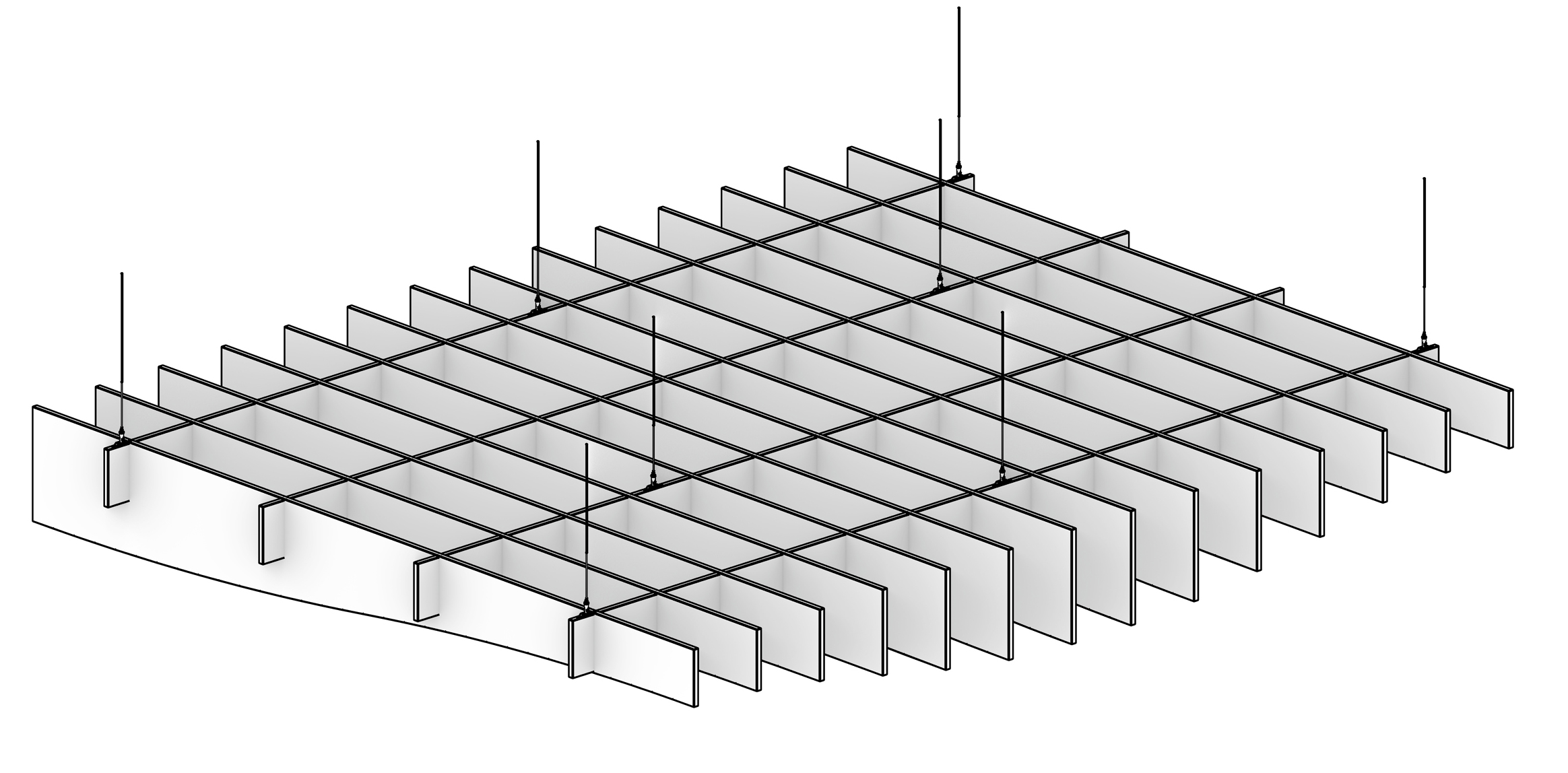 - Suspends by cable, threaded rod, T-grid, or Unistrut to fit your space