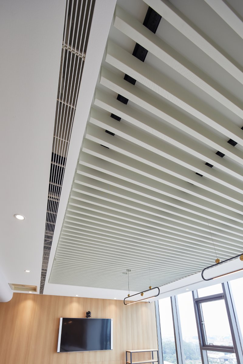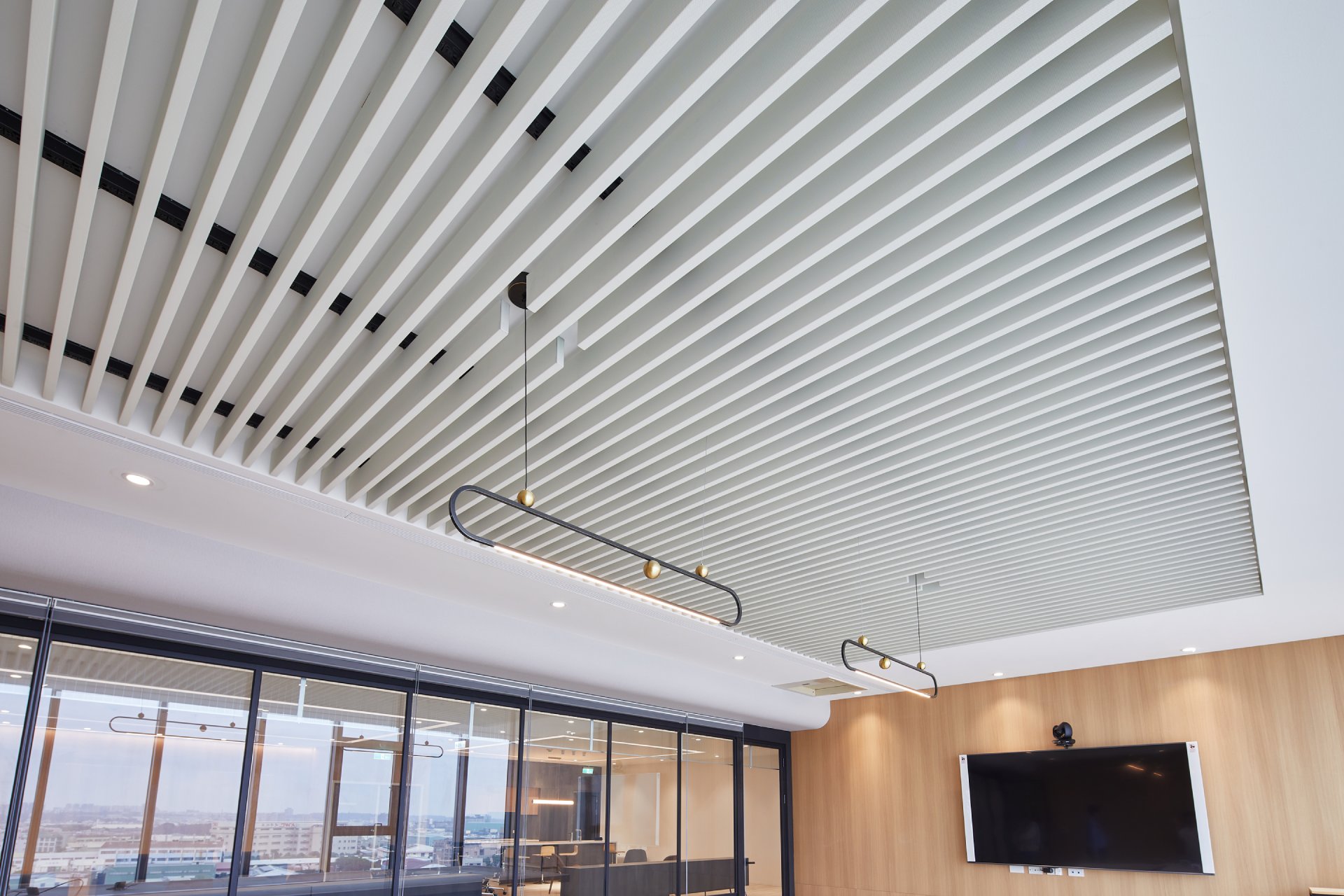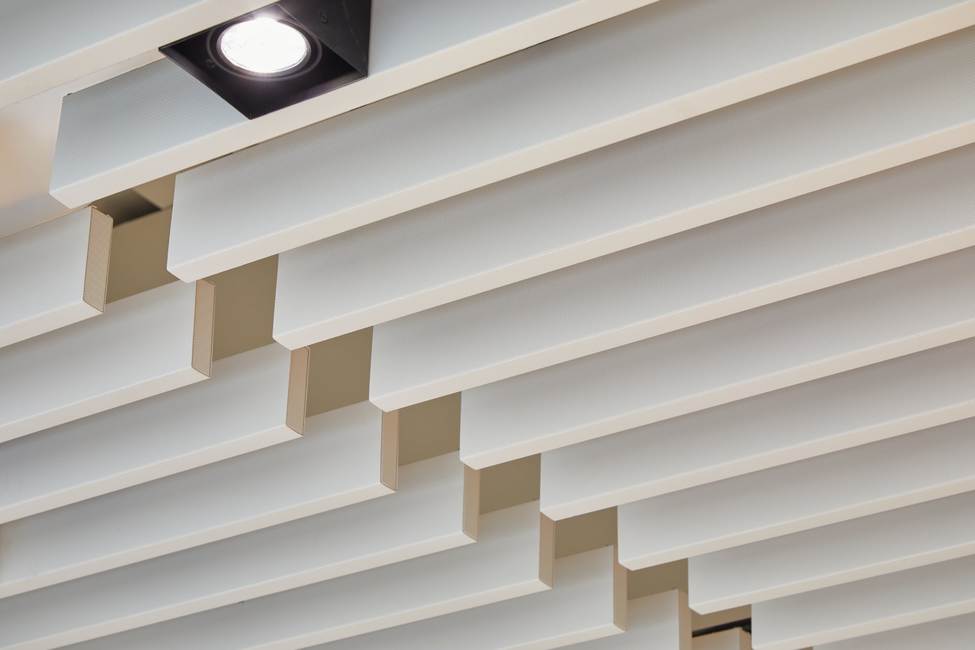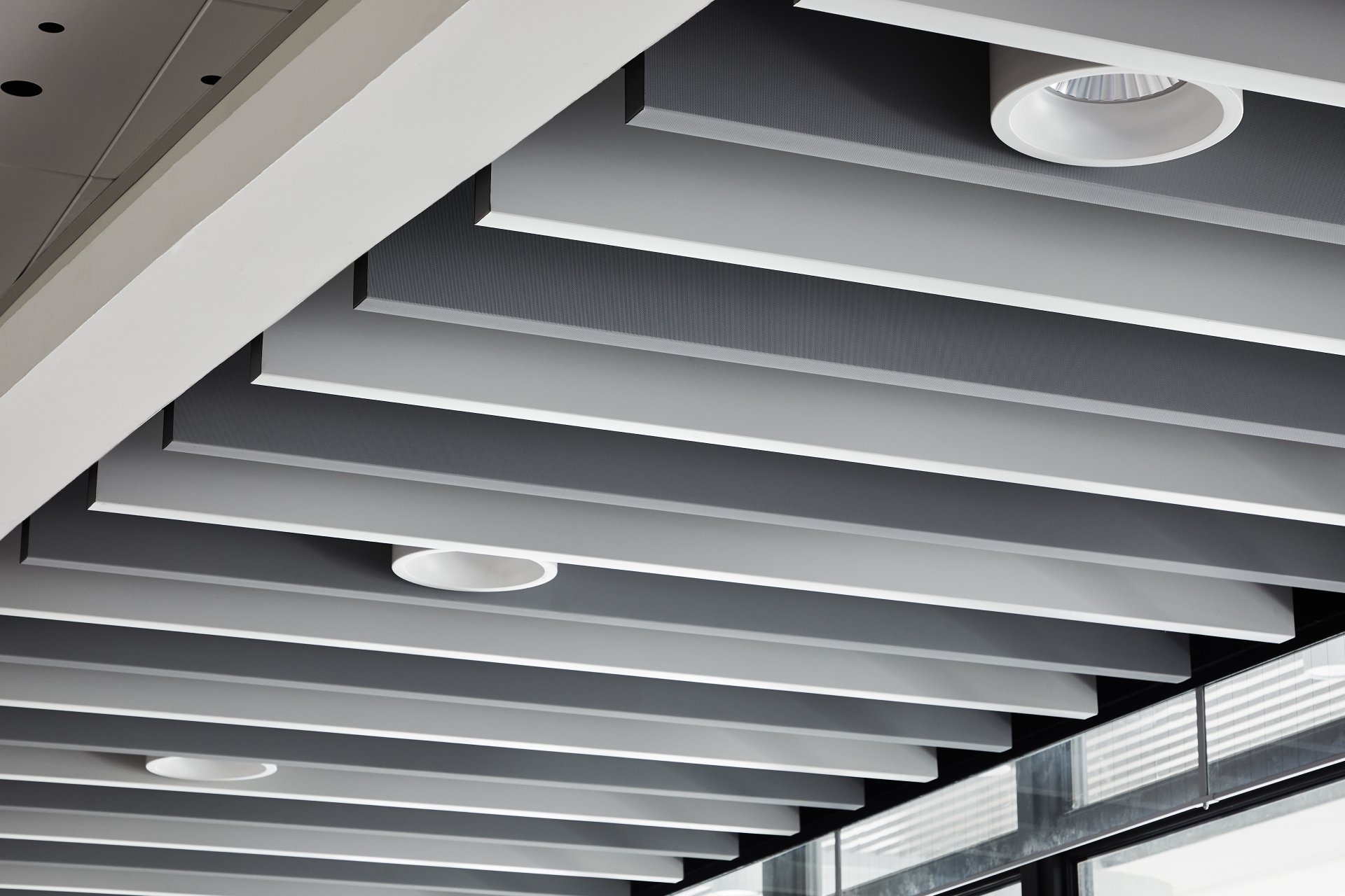 Silk Metal Baffles provide exceptional sound absorption (NRC 0.70) without the need for acoustic infill. This unique, infill-free design ensures crisp lines and a visually seamless look, allowing you to create dramatic metal ceiling features without compromising performance. It’s architectural integrity and acoustic control, elegantly simplified.